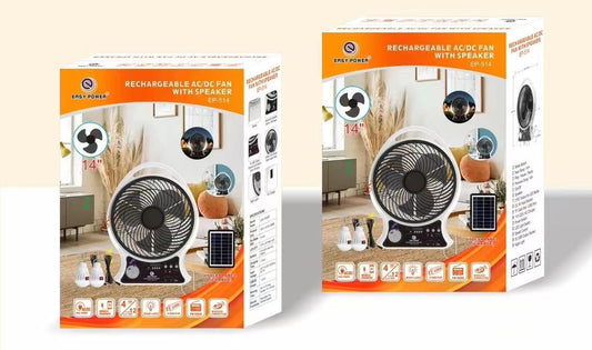 Abanico Recargable Con Panel Solar y Eléctrico Con Bombillos y Bluetooth (14 Pulgadas)
