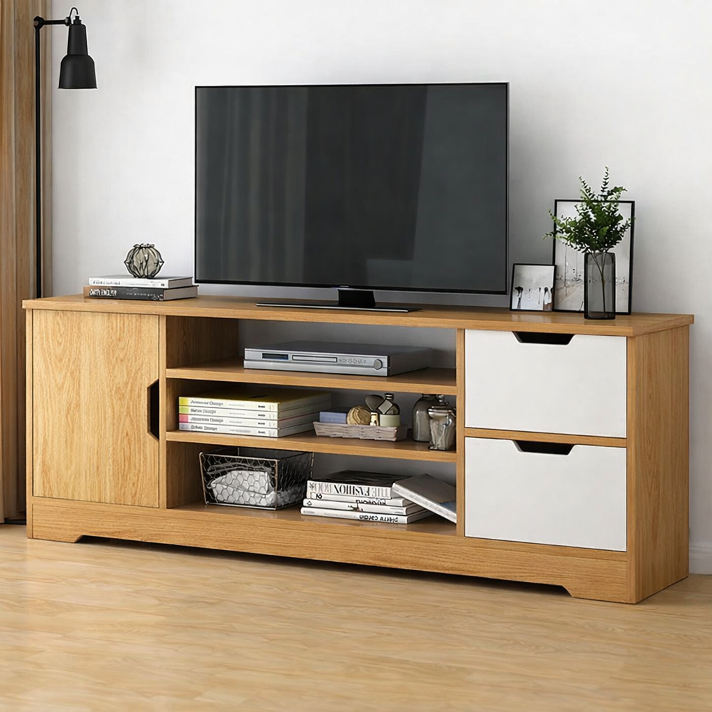 Fabricado en madera MDF/LDSP de alta resistencia, con acabado blanco elegante, fácil de limpiar y combinar con cualquier decoración. Su superficie superior es firme y estable, ideal para televisores de gran tamaño.