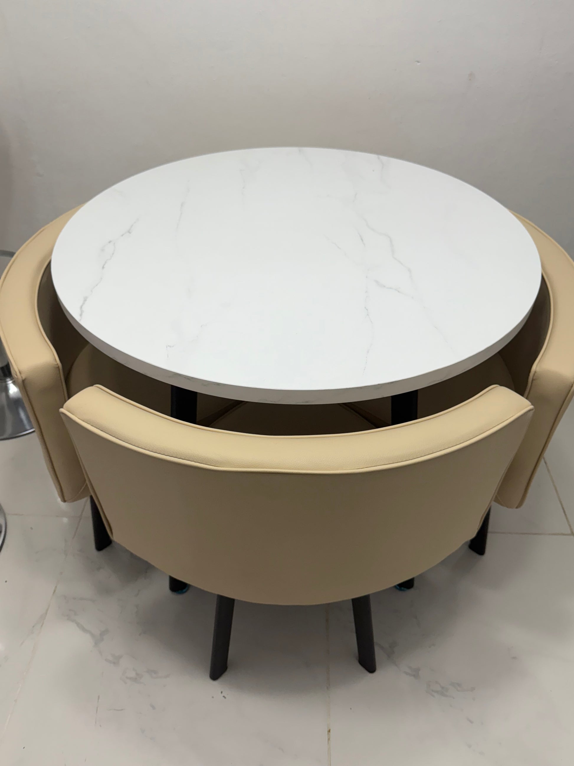 ✅ Mesa redonda con tope efecto mármol blanco 🏡
