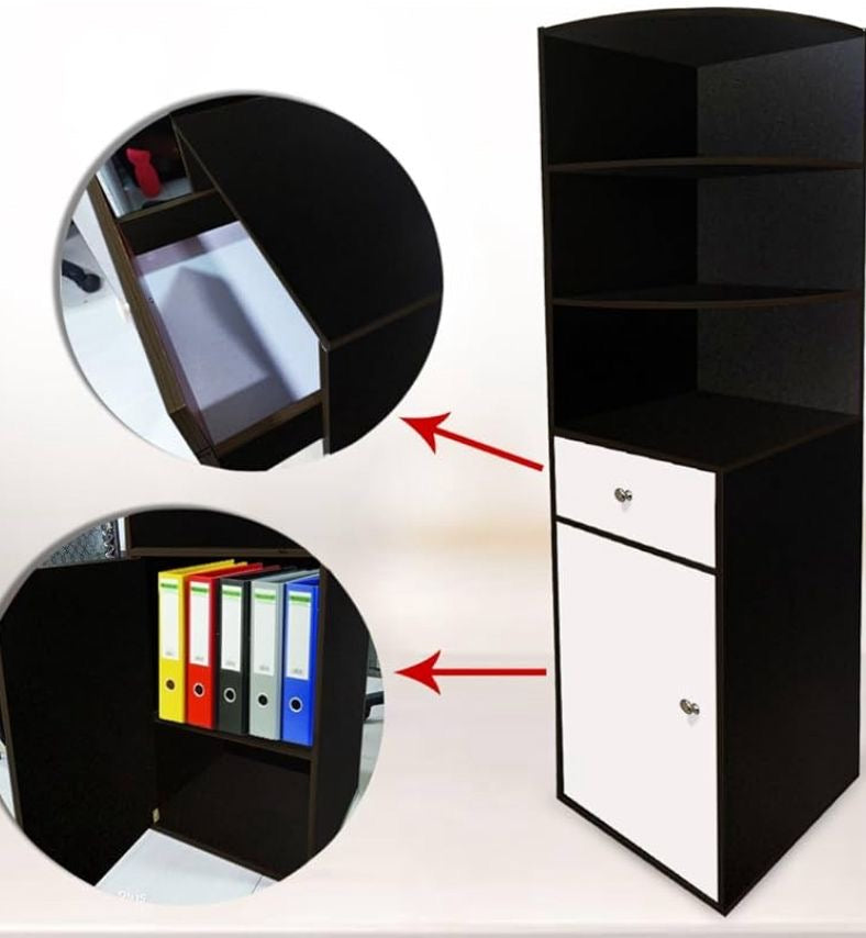 📚 Esquinero Multifuncional con Gaveta y Puerta – Diseño Moderno Blanco & Negro