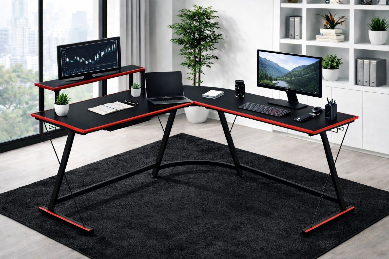 🖥️✨ Escritorio Gamer en Forma de L (Cod. 88333-3) ✨🖥️ Negro/Roja 💰 RD$4,295