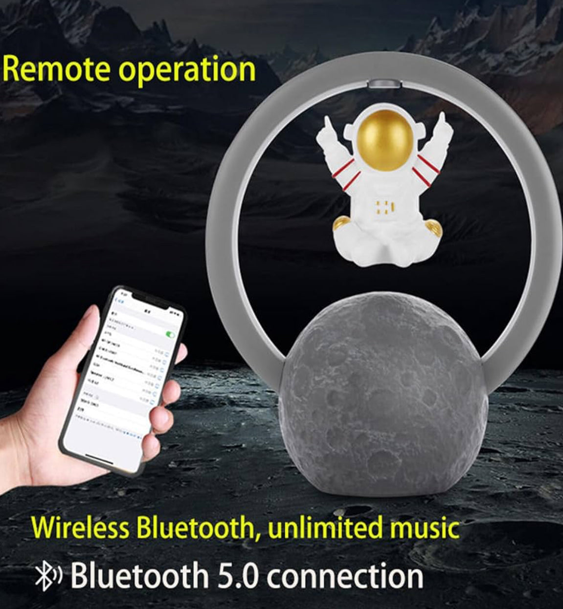 Ilumina tu espacio con estilo futurista y disfruta tu música favorita con esta increíble bocina Bluetooth 5.0 con diseño de astronauta levitante. 🌕👨🚀