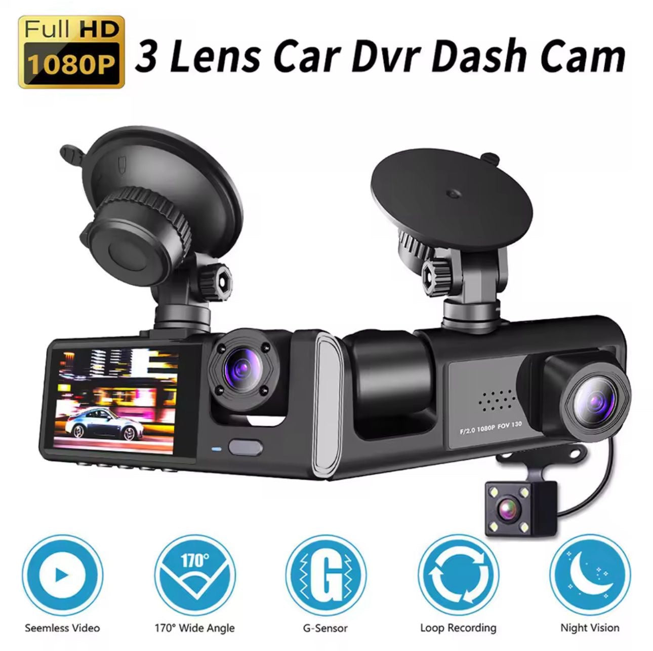 🚗💥 ¡Protege tu vehículo con esta Dashcam 1080P HD de 3 lentes! (wifi) (Cod.1080)