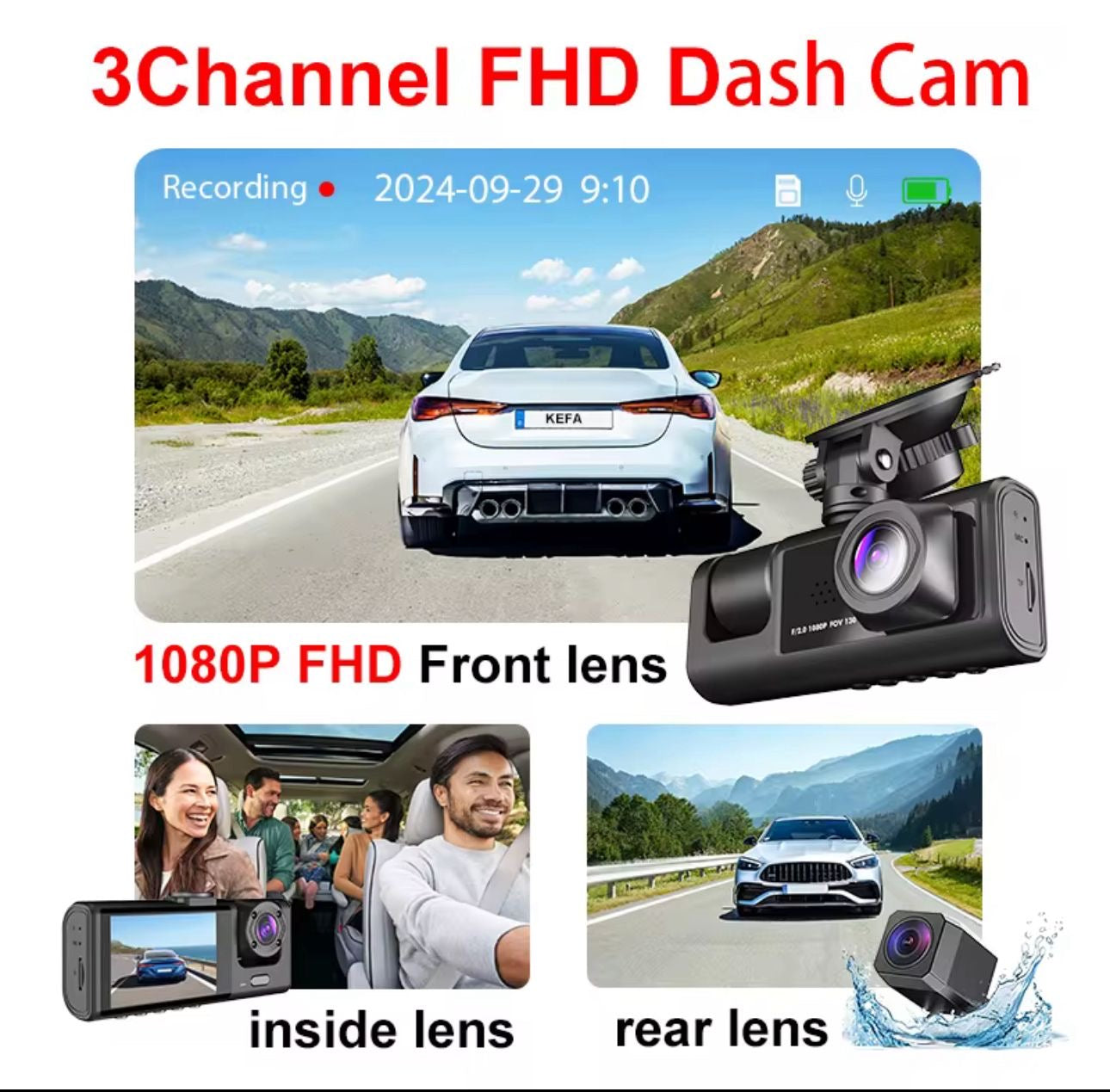 ✅ 3 lentes para vista frontal, interior y trasera