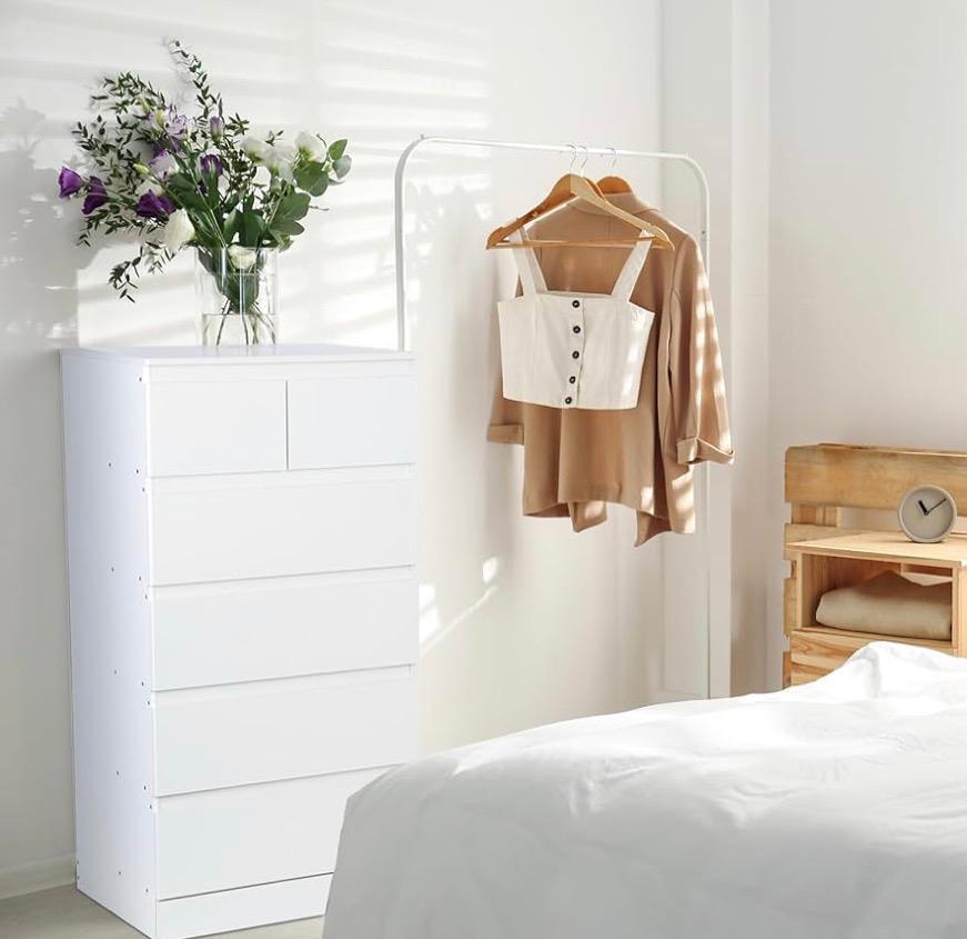 Te da 6 gavetas amplias, estructura firme y un diseño limpio que combina con cualquier dormitorio moderno. Es de las piezas que venden solas porque se ven minimalistas, elegantes y funcionales.