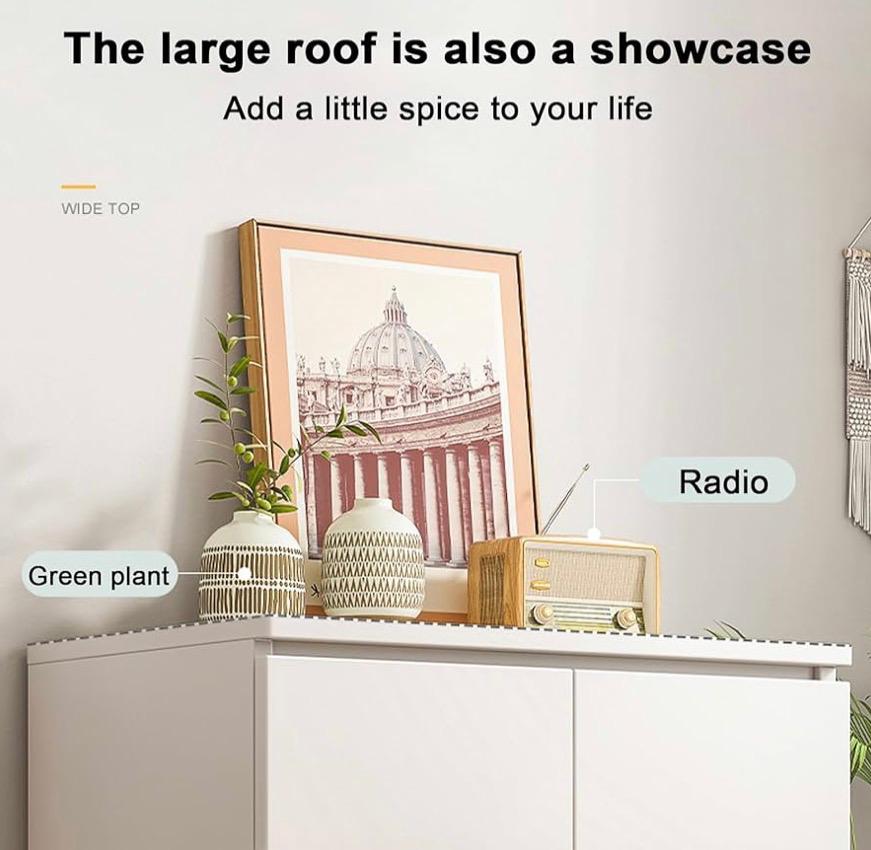 • Superficie superior amplia, perfecta para poner decoración, plantas, fotos, perfumes o un radio.