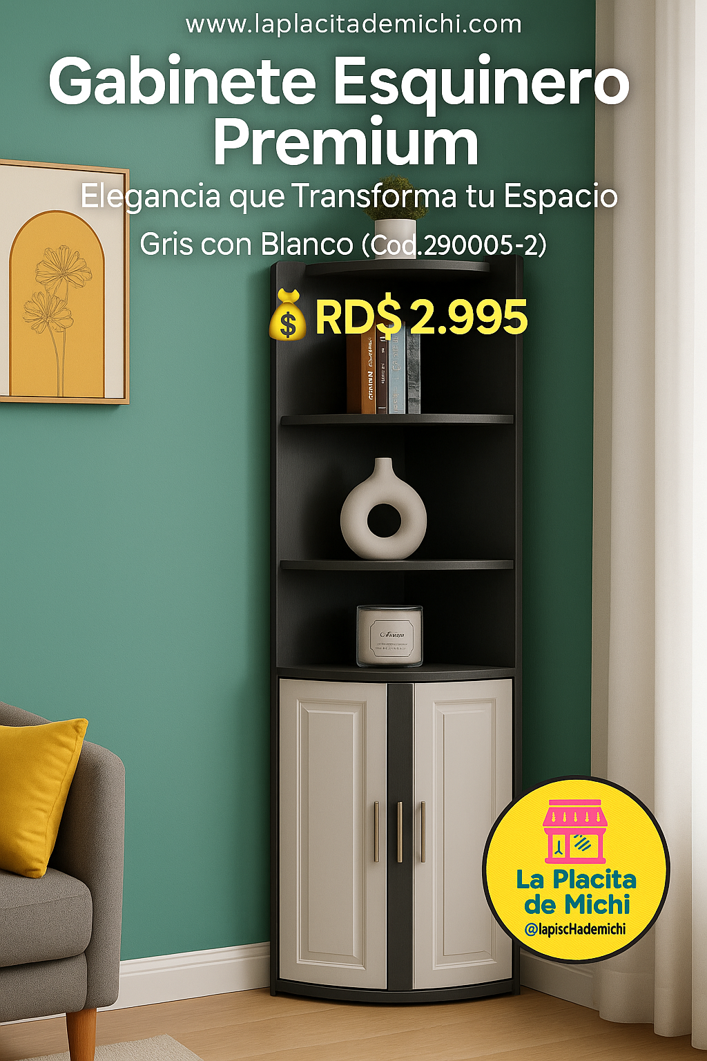 Gabinete Esquinero Premium – Elegancia que Transforma tu Espacio Gris con Blanco (Cod.290005-2) 💰RD$2,995