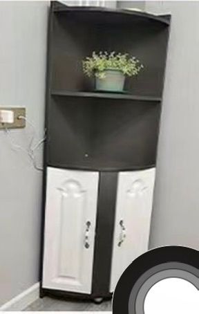 Convierte cualquier rincón en un punto de estilo con este gabinete esquinero de diseño contemporáneo. Su combinación de tonos sobrios y líneas minimalistas crea una pieza que no solo organiza, sino que eleva la estética de todo el ambiente. Cada detalle —desde los estantes abiertos hasta las puertas pulidas del compartimento inferior— está pensado para ofrecer funcionalidad sin perder sofisticación.